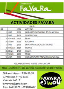 Actividades mes de Marzo en FAVARA