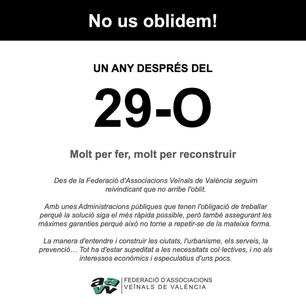 Des de la Federació d’Associacions Veïnals de València seguim reivindicant que no arribe l’oblit.